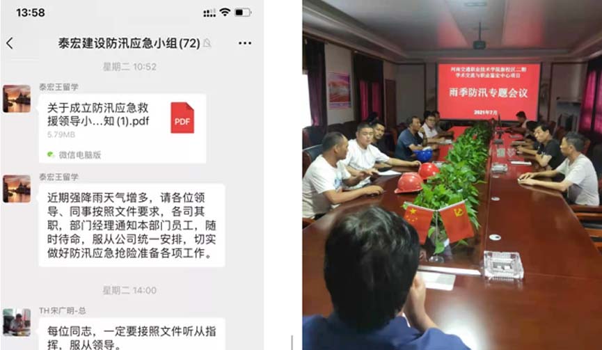 未雨绸缪!泰宏建设在7月初就成立了“抗洪抢险小组”,提前做了安排部署,整合应急队伍等,因此在此次抗洪抢险中,各在郑项目部第一时间落实防汛措施,有条不紊的开展自救和救援工作,有效保障了项目部人员及其他群众的生命财产安全。